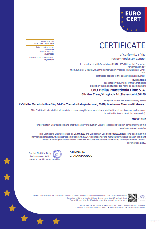 Πιστοποίηση ποιότητας δομικής ασβέστου CE (EN)